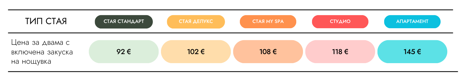 Минимум 2 нощувки през делнични дни (неделя – четвъртък)